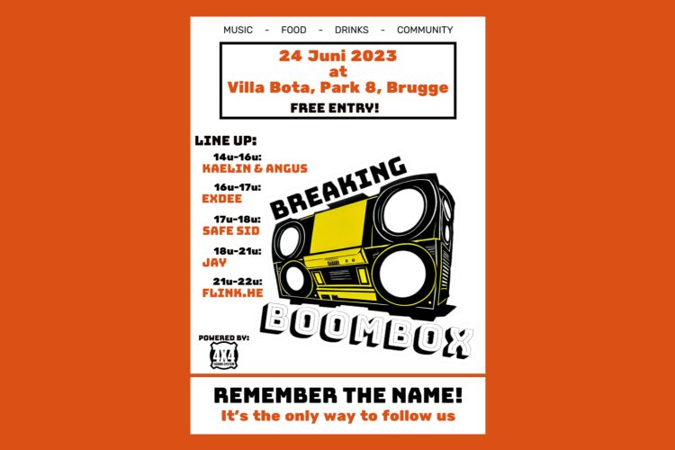 Breaking Boombox is a local Bruges based music & culture event, based around a ‘4x4 Soundsystem’