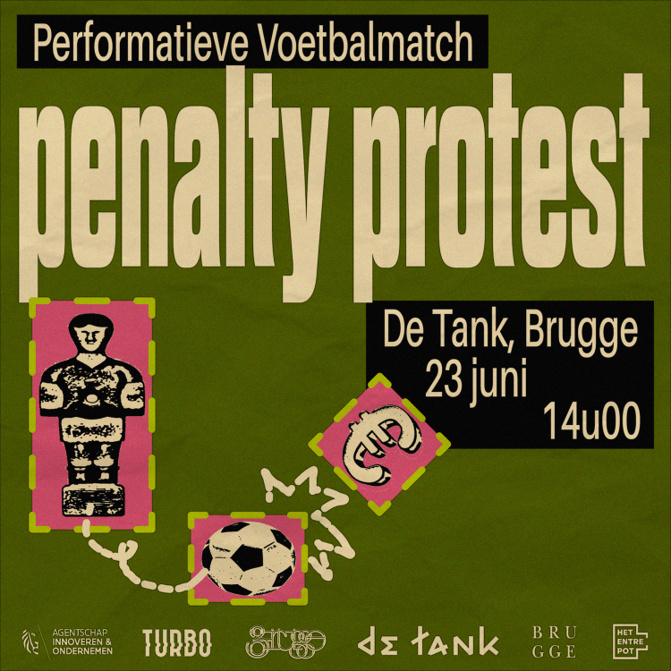 Op het grasveld van atelierwerking de Tank organiseren we een geĂŤnsceneerde voetbalmatch met uitsluitend kunstenaars als spelers. Vijf spelers spelen een thuismatch voor hun atelier en vijf spelers zijn kunstenaars van buiten Brugge die uit de aanpalende expositie âClown Museumâ meespelen.